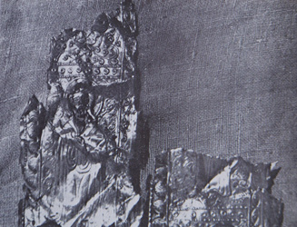 ქვედა ზოლზე, ცენტრში, მცირე ზომის, ქრისტეს მთლიანი ფიგურაა კურთხევის პოზაში გამოსახული. მის ორივე მხარეს ჯვარცმაა მოცემული (განმეორებულია ერთი და იგივე შტამპი), კიდეებში მედალიონებია ამხედრებული წმინდა გიორგის გამოსახულებით.