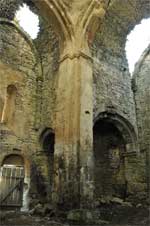 ფუძნარის ღვთისმშობლის ეკლესია ძლიერ დაზიანებულია: ჩამოშლილია გუმბათის ყელისა და კამარების მნიშვნელოვანი ნაწილი, კედლების ზემოთა ნაწილები და ლავგარდანი, ფასადების საპირე წყობის დიდი ნაწილი აკლია. ჯვრის აღმოსავლეთის მკლავი დასრულებულია ნახევარწრიული აფსიდით, რომლის წინ ბემაა. აფსიდი და ბემა ერთმანეთთანაა შერწყმული. მათ საზღვრებზე შეკიდულ პილასტრებზე დაყრდნობილი ვიწრო საბჯენი თაღია. აფსიდის ღერძზე ფართო თაღოვანი სარკმელია, ხოლო ჩრდილო ნახევარში, მაღლა – დიდი და საკმაოდ ღრმა ნიში. საკურთხეველი დარბაზის იატაკის მიმართ რამდენადმე შემაღლებულია. ადრე იგი გამოყოფილი იყო შირიმის მოზრდილი კვადრებით ნაწყობი კანდელით. ამჟამად შემორჩენილია მისი მარჯვენა კიდის მცირე ნაწილი. ჯვრის დანარჩენი მკლავები სწორკუთხაა, თითოეულ მკლავში თითო თაღოვანი შესასვლელია გაჭრილი. დასავლეთის მკლავი სამხრეთისა და ჩრდილოეთის მკლავებზე თითქმის ორჯერ ღრმაა და კუთხის სივრცეებს თითო ფართო ნახევარწრიული თაღით უკავშირდება. საკურთხევლის გვერდებზე სწორკუთხა სამკვეთლო და სადიაკვნეა. ორივე მათგანს შესასვლელი დასავლეთიდან აქვს, შესაბამისი მკლავიდან, აღმოსავლეთით კი – თითო სარკმელი. სადიაკვნის ჩრდილოეთ კედელში, იატაკიდან 2,2 მ. სიმაღლეზე, მაღალი წრიული ნიშია, საიდანაც იწყება მილისებრი ასასვლელი კამარებს ზემოთ არსებულ სივრცეში. სამკვეთლოს და სადიაკვნის კედლები ნაწყობია ნატეხი ქვებით, კამარა კი – ეკლესიის კონქისა და მკლავების კამარებისაგან განსხვავებით – შირიმისაა.