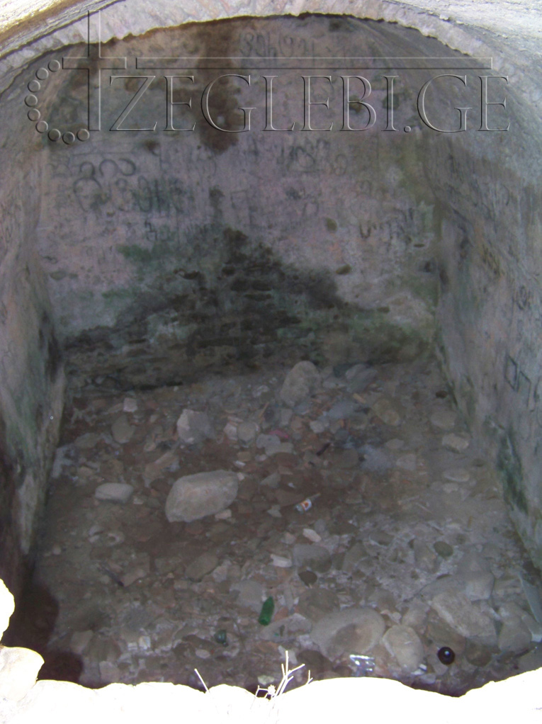 დ) მოზრდილი ეკლესიის ქვეშ 3-4 მეტრის სიღრმის წყალსაცავია, რომელიც გადახურულია შეისრული, დამჯდარი კამარით. წყალსაცავის კედლები მტკიცე ბათქაშითაა დაფარული. წყლის ჩასაშვებად დასავლეთი კედლის შუაზე, თითქმის მიწის დონეზე დატანებულია სწორკუთხა ხვრელი (10X15 სმ). ამ ხვრელის ქვედა ქვა თხუთმეტიოდე სანტიმეტრით წინაა გამოწეული, შემდეგ ხვრელი უხვევს და გადის აუზის კამარის ქვემოთ. თაღოვანი გადახურვის მქონე წყლის მისაღები კარი მოთავსებულია ქვემოთ, აღმოსავლეთის ფასადის შუაზე.