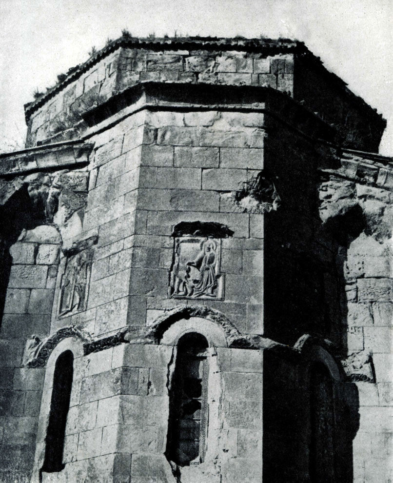 С 7 в. в грузинском зодчестве разрабатывался также особый тип четырех-абсидного храма (тетраконха) с обходом по кругу в виде коридора. Подобного рода сооружения строились в юго-западных районах Грузии.