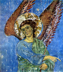 Ангел. Фрагмент фрески «Благовещение» храма в Атени. Начало 10 в. или 2-я половина 11 в.